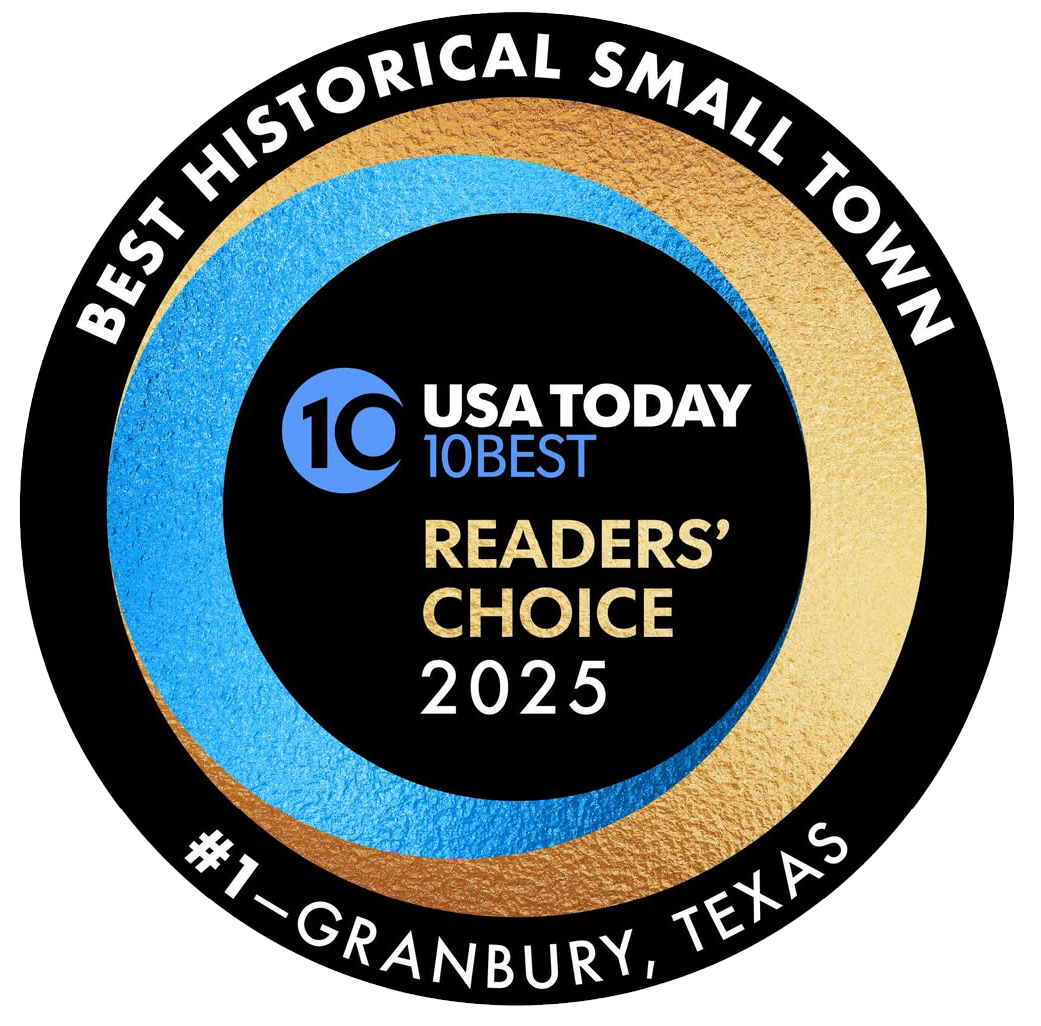 Granbury is home to the oldest historic courthouse square in Texas and attracts visitors for a myriad of reasons. Known as “The Celebration Capital of Texas”, the city won USA Today’s “Best Historic Small Town in America” three years in a row from 2019 to 2021, and most recently in 2025. In 2023, Granbury was awarded the “Best Destination for Foodies – People’s Choice Award 2023” by the Texas Travel Awards. There are over 40 Historic Texas Landmarks around Granbury.